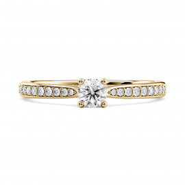 Solitaire accompagné de Diamants serti grain sur les côtés avec un Diamant central serti à 4 griffes. Ce modèle existe en Or 375/1000 9K en qualilté G/SI2, existe aussi en Or 750/1000 18K en qualilté G/SI2, G/SI1 et G/VS en couleur Jaune, Blanc ou Rose.