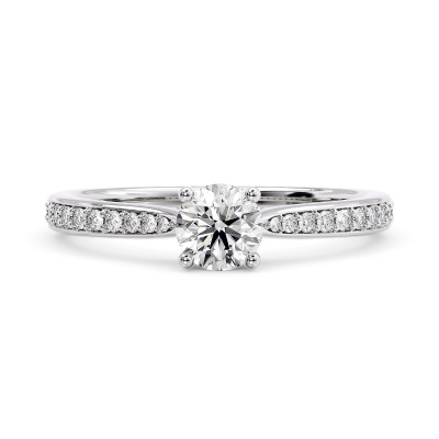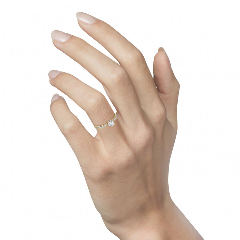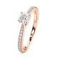 Solitaire accompagné de Diamants serti grain sur les côtés avec un Diamant central serti à 4 griffes. Ce modèle existe en Or 750/1000 18K en qualilté G/SI2, G/SI1 et G/VS en couleur Jaune, Blanc ou Rose.