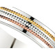 Alliance ruban plat trois Or. Une ligne en Or Jaune et une autre en Or Rose toutes deux finement guillochées égayent cette alliance. Ce modèle existe en Or 750/1000 (18K) et en Or 375/1000 (9 K).